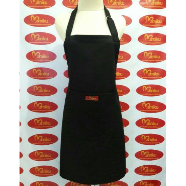 Celemek polos dg warna hitam sangat cocok digunakan utk perlengkapan memasak atau bisa juga utk uniform cafe,resto,kedai,event kuliner,event bazaar dll