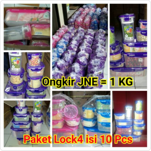 Lock Four Set isi 10 Pcs Adalah Tempat Penyimpanan Multi Fungsi Dari Green Leaf, memiliki sistem penutup di ke Empat Sisinya, dilengkapi dengan karet pengaman sehingga tidak mudah tumpah dan makanan tersimpan dengan aman.