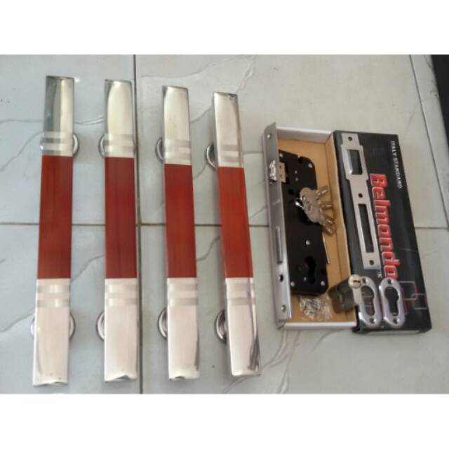 Handle pintu stainless 33cm 2set (4 gagang) + body pelor comp key isi anak kun
