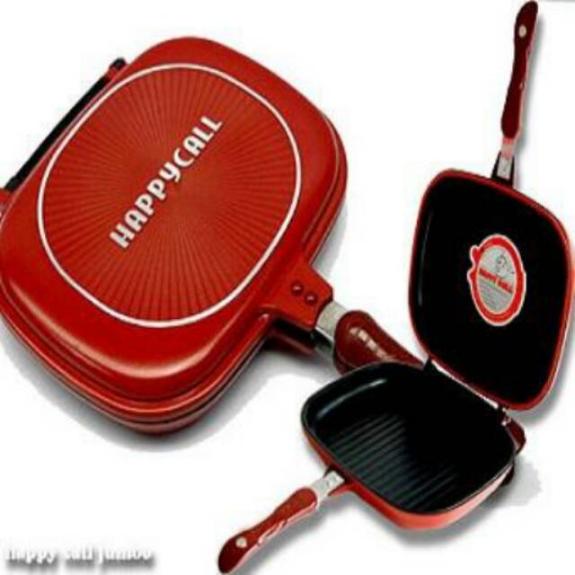 Happy Call Doubel Pan Original Made in Korea, terbuat dari bahan berkualitas tinggi anti lengket serta aman digunakan. Mempunyai diameter 32 cm. Memiliki special silicone seal yang di desain oleh Dow Corning dari USA, sehingga masakan tidak akan tumpah saat Anda akan membalik masakan. Happy Call Doubel Pan juga memiliki magnetic handle yang kuat yang akan membuat Anda nyaman saat mengenggamnya. Anda bisa memasak dengan cepat meskipun dengan panas yang sedang, karena panas di Happy Call merata dan memiliki efek seperti oven yang mengunci panas yang ada di pan. Double Pan ini cocok untuk Anda yang memiliki masalah dalam memasak ikan yang susah di balik, dan juga terlindungi dari percikan minyak, bau dan juga asap dari masakan. Bonus buku korea dan juga karet Seal cada